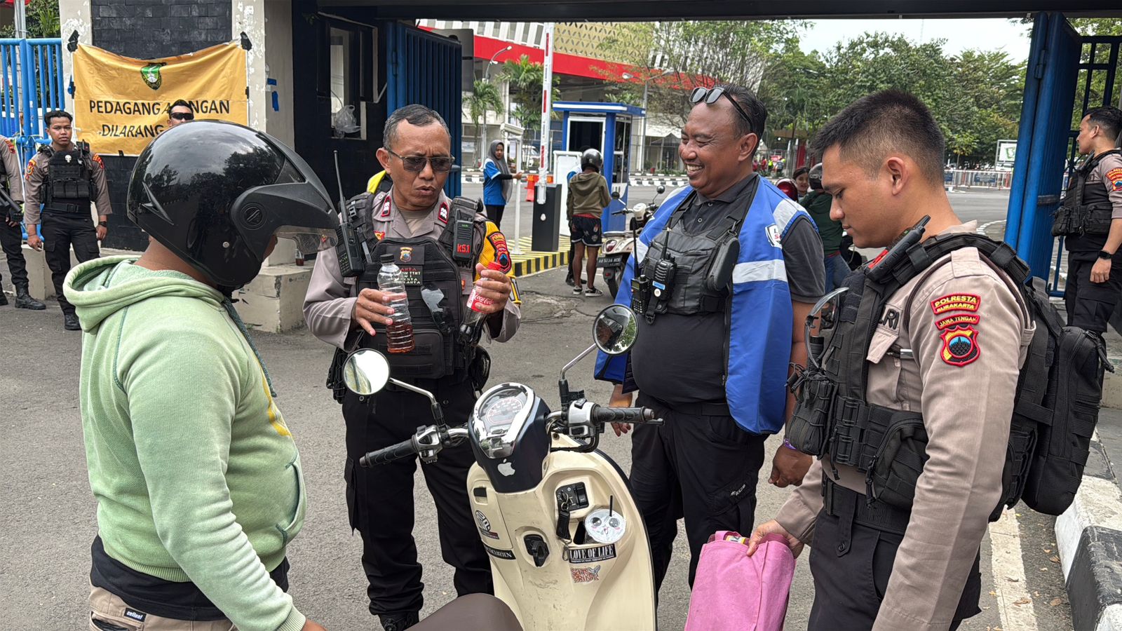 Polresta Surakarta- Polda Jateng- Tim Sparta Satuan Samapta Polresta Surakarta mengamankan dua warga Klaten berinisial RNA (24) dan CNS (29) yang kedapatan membawa minuman keras jenis arak di pintu masuk Gate C Stadion Manahan, Surakarta, Jumat (13/2/2026).