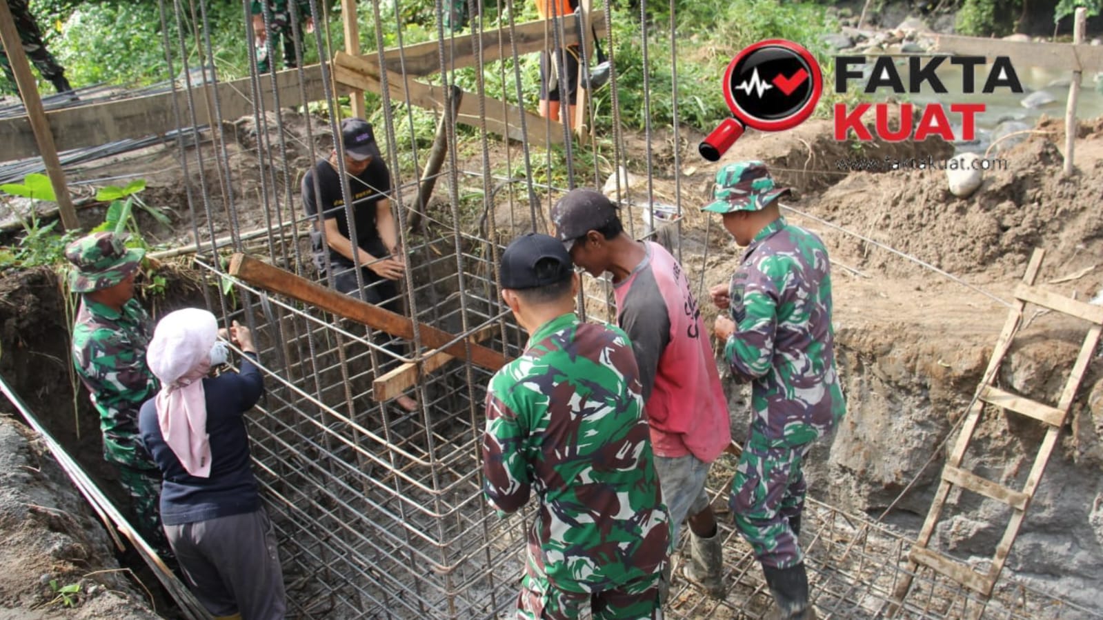 Magelang – Di atas aliran Sungai Kanci, tepatnya di Dusun Kaliduren, Desa Sukodadi, Kecamatan Bandongan, Kabupaten Magelang, rangka baja mulai membentang perlahan. Di sanalah anggota Kodim 0705/Magelang bersama masyarakat bekerjasama membangun Jembatan Gantung “Garuda” guna menjadi penghubung antara Dusun Kaliduren dan Dusun Pongangan yang selama ini dipisahkan derasnya arus sungai dan medan yang tak selalu bersahabat.