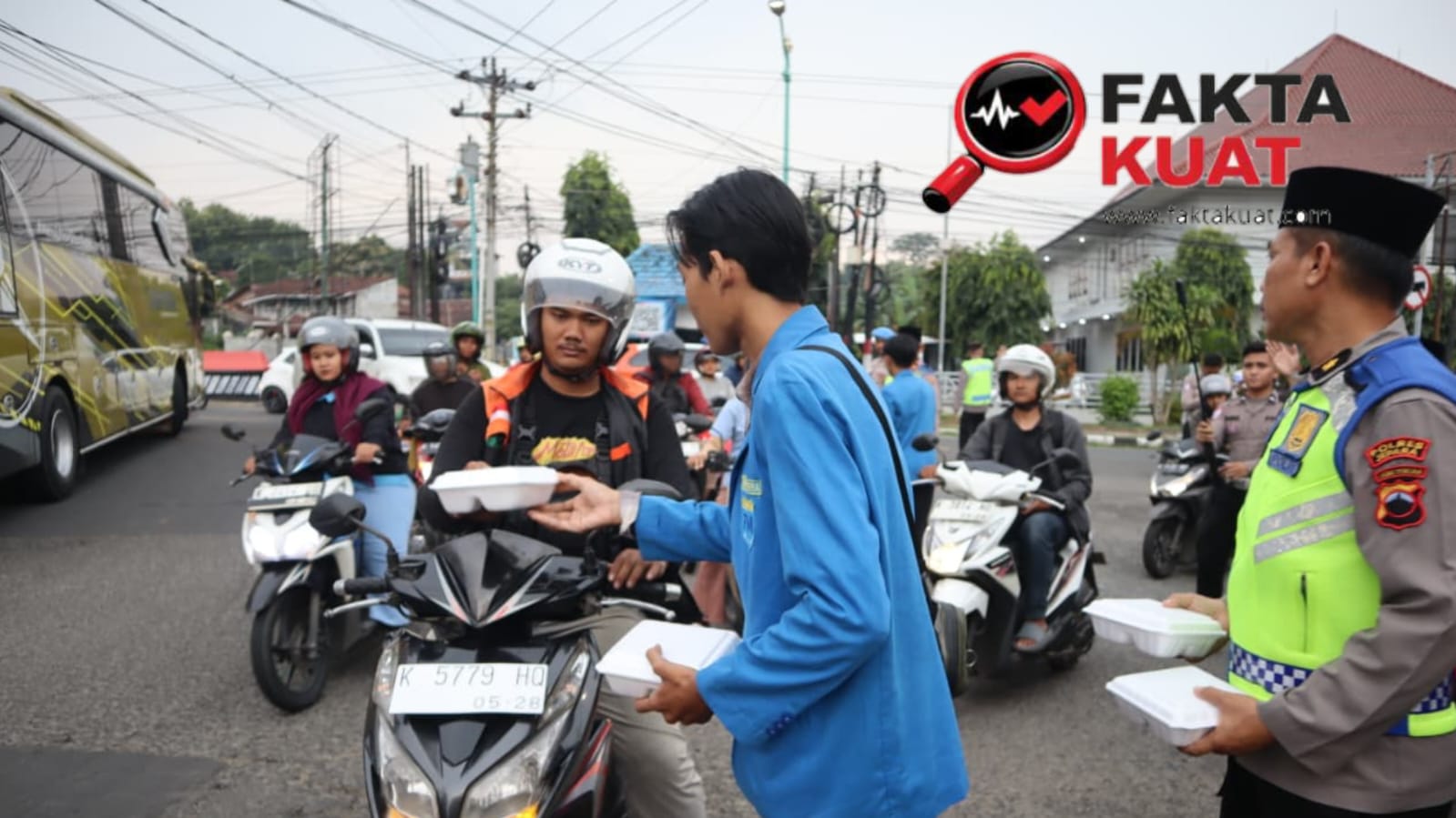 Bersama Bhayangkari dan mahasiswa, Polres Jepara membagikan sekitar 300 paket takjil. Tak sekadar berbagi, namun kegiatan juga diselingi edukasi tertib berlalu lintas.