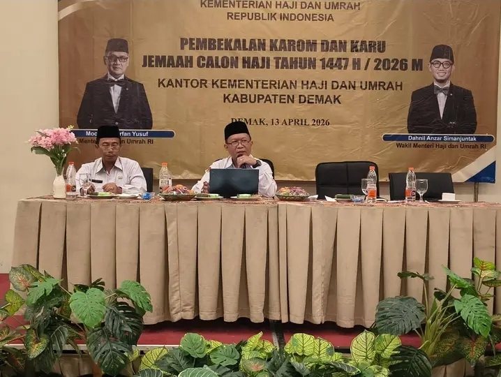 Demak ,FaktaKuat.com – Kantor Kementerian Haji dan Umrah Kabupaten Demak menggelar kegiatan pembekalan bagi Ketua Rombongan (Karom) dan Ketua Regu (Karu) jamaah calon haji tahun 1447 H/2026 M, bertempat di Hotel Amantis Demak. Senin (13/4/2026).