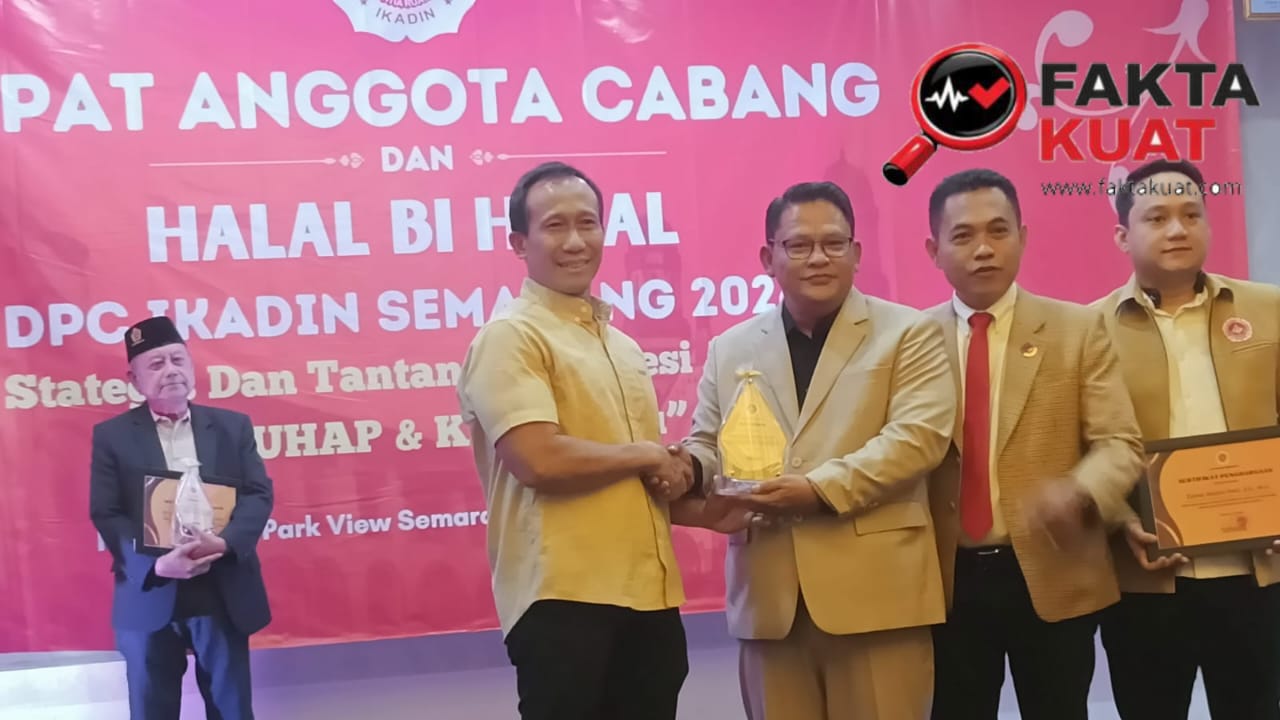 Penghargaan tersebut diberikan dalam rapat anggota cabang (RAC) DPC IKADIN Kota Semarang yang dirangkaikan dengan halal bihalal di Metro Park View Hotel Kota Lama Semarang, Sabtu malam, 18 April 2026.