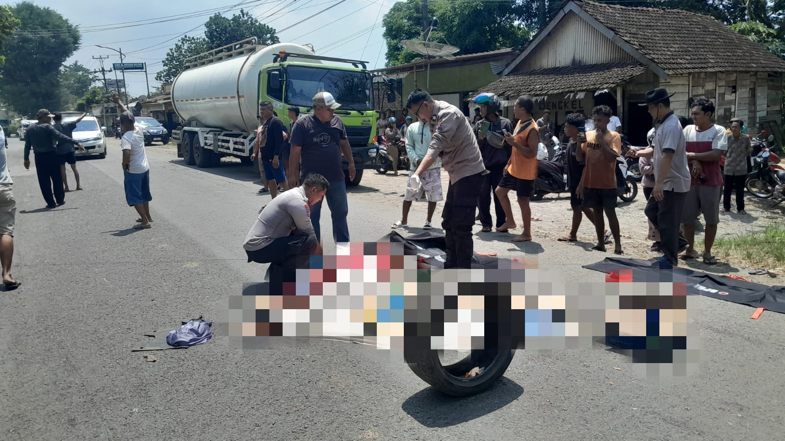Berdasarkan hasil olah TKP awal, kecelakaan bermula saat sepeda motor Honda Beat tanpa nomor polisi yang dikendarai oleh remaja berinisial K (13) berboncengan dengan M (12) melaju dari arah barat. Saat mencoba mendahului truk tronton tangki, pengendara motor diduga terkejut dengan munculnya kendaraan truk dump dari arah berlawanan.