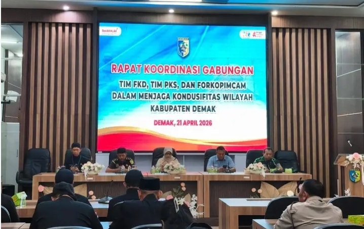 Demak,Faktakuat.com- Pemerintah Kabupaten Demak melalui Badan Kesatuan Bangsa dan Politik (Bakesbangpol) menggelar Rapat Koordinasi (Rakor) Gabungan dalam upaya menjaga kondusifitas wilayah. Selasa (21/04/2026), di Gedung Grhadika Bina Praja.